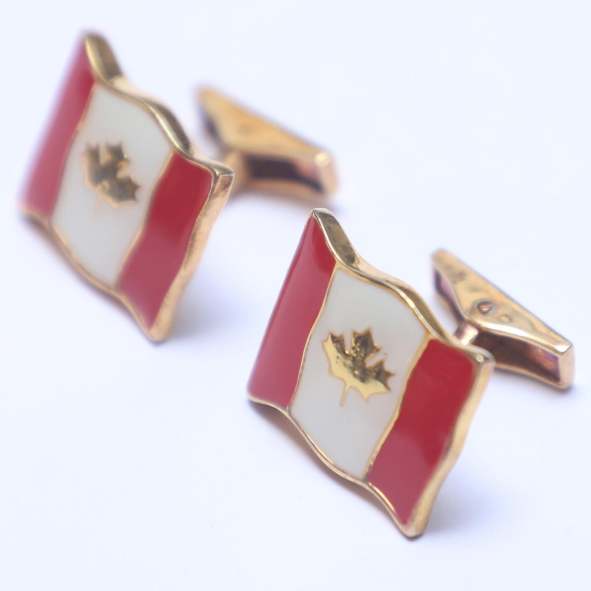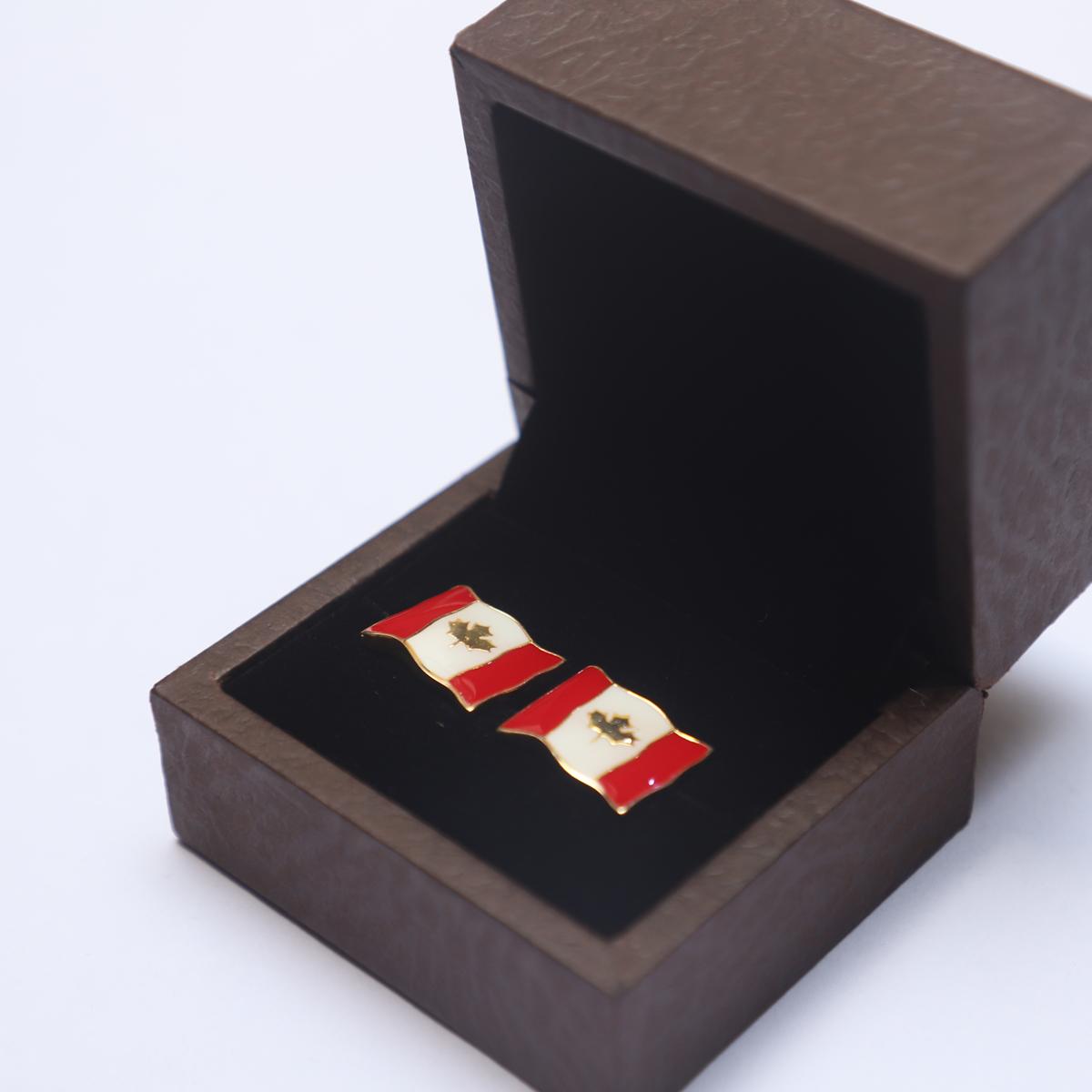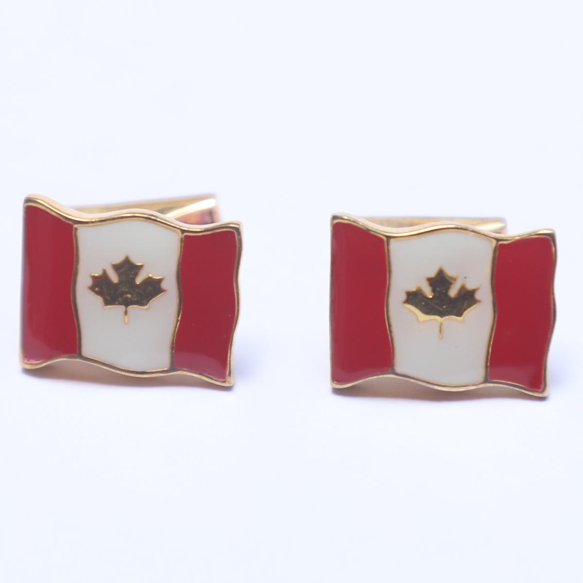 Sterling Silver Cufflinks with Red and White Enamel Canada Flag Design in Flag Shape